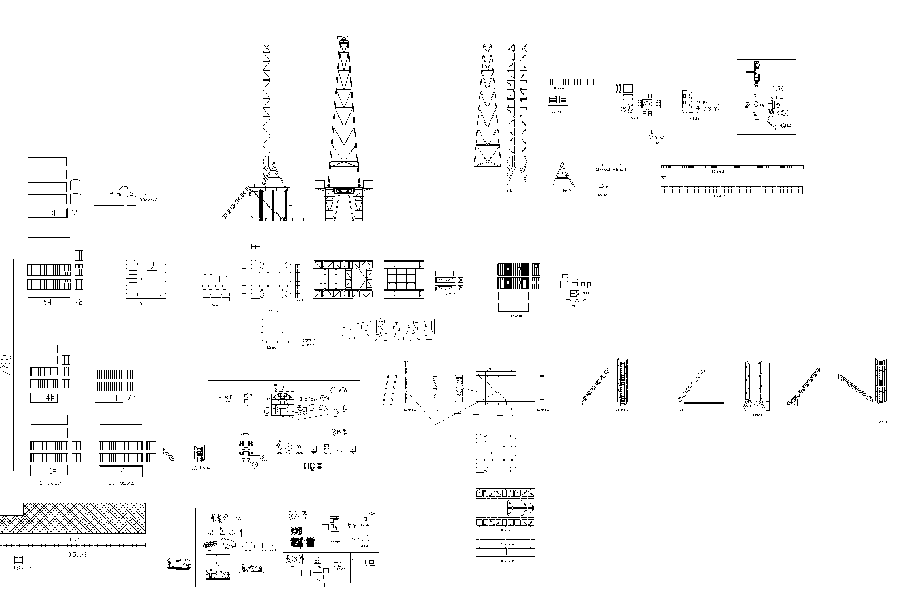此石油鉆機(jī)模型采用宏華70DB井架圖紙按比例1:50設(shè)計,